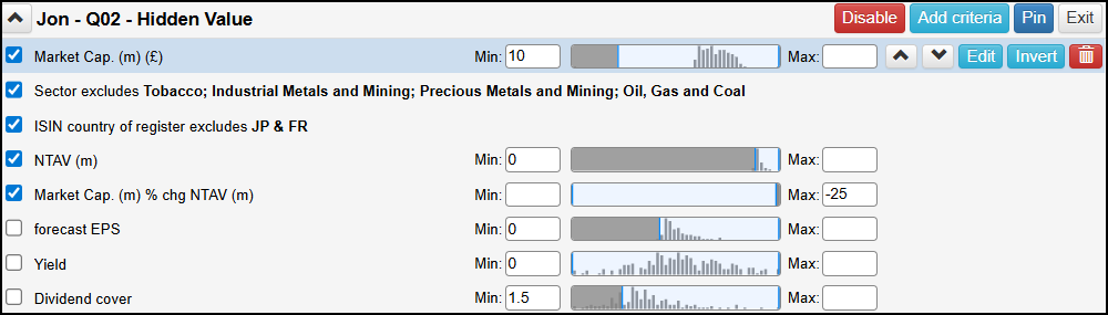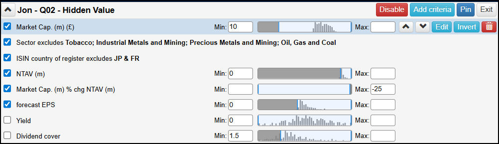 Market Cap: Default - £10m to No limit - To exclude small illiquid stocks