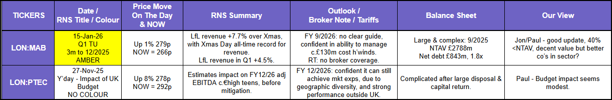 Members of the Small/Mid Caps with Paul Scott Substack can click here to access details and commentary for the vast majority of all of the stocks from the above results (although note, the coverage may not be complete for the excluded sectors). The full history for most UK stocks is available via the online search tool, a database covering over 12 months of updates in some cases.